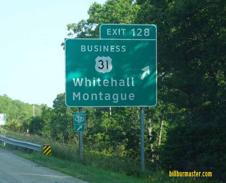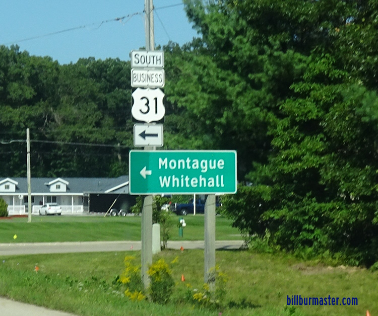 A BGS on NB U.S. Rt. 31. A BGS on NB U.S. Rt. 31. NB U.S. Rt. 31 near Whitehall Road. NB BUSN U.S. Rt. 31 near Franklin in White Hall. NB BUSN U.S. Rt. 31 near Mears in White Hall. NB BUSN U.S. Rt. 31 west of 1st Street in White Hall. NB BUSN U.S. Rt. 31 north of Colby Street in White Hall. NB BUSN U.S. Rt. 31 near White Lake. NB BUSN U.S. Rt. 31 at Water Street in Montague. NB BUSN U.S. Rt. 31 near Hunt Street in Montague. NB BUSN U.S. Rt. 31 near Stanton Blvd in Montague. A guide marker on NB BUSN U.S. Rt. 31. A guide marker on SB Old U.S. Rt. 31. A guide marker on SB BUSN U.S. Rt. 31. A guide marker on SB BUSN U.S. Rt. 31. SB BUSN U.S. Rt. 31 at U.S. Rt. 31. The northern end of BUSN U.S. Rt. 31. The northern end marker.