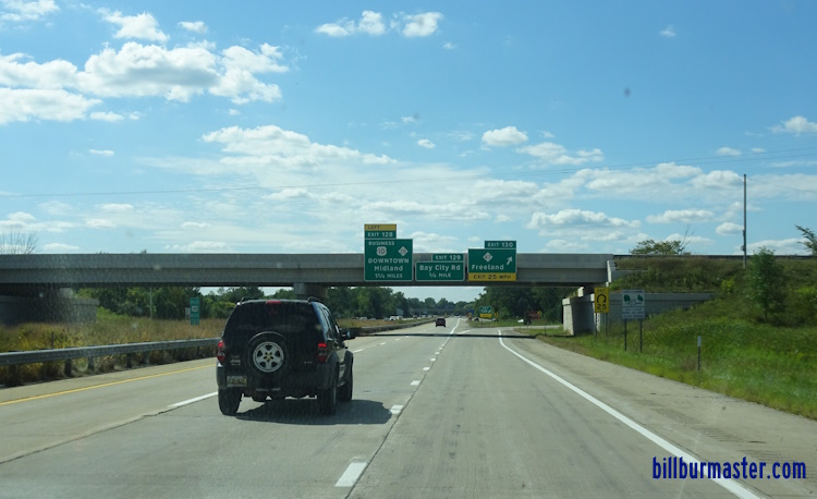 WB U.S. Rt. 10 east of Midland. EB U.S. Rt. 10 at Flajole Road. WB U.S. Rt. 10 at MI St Rt 47. WB U.S. Rt. west of Auburn. WB U.S. Rt. 10 west of I-75; BUSN Spur I-75; U.S. Rt. 23; MI St Rt 25. A BGS on NB I-75/U.S. Rt. 23. A BGS on NB I-75/U.S. Rt. 23.