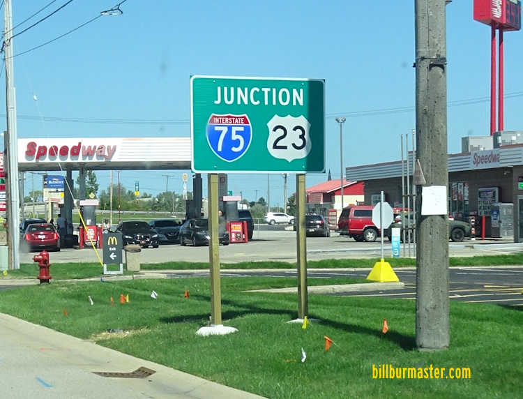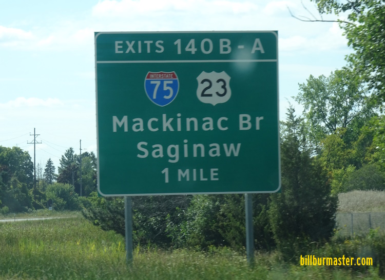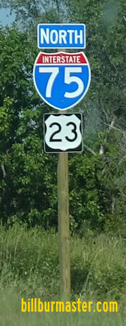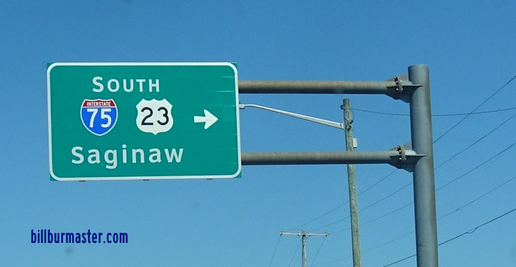 A junction marker on NB MI St Rt 84. A guide sign on NB MI St Rt 84. A guide sign on NB MI St Rt 84. NB I-75/U.S. Rt. 23 north of MI St Rt 84. NB I-75/U.S. Rt. 23 south of BUSN Spur I-75/U.S. Rt. 10/MI St Rt 25. A BGS on WB BUSN Spur I-75/MI St Rt 25.