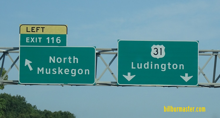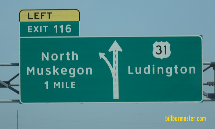 Branches of U.S. Rt. 31 in Muskegon County. NB U.S. Rt. 31 at the Ottawa/Muskegon County Line. NB U.S. Rt. 31 at Pontaluna Road. NB U.S. Rt. 31 at Sternburg Road. NB U.S. Rt. 31 near Norton Shores. NB U.S. Rt. 31 at Mile Road. NB U.S. Rt. 31 at I-96/BUSN U.S. Rt. 31. A BGS on WB I-96. A BGS on SB U.S. Rt. 31 for I-96. A BGS on EB I-96. A BGS on WB I-96. SB U.S. Rt. 31 at I-96. NB U.S. Rt. 31 north of I-96/BUSN U.S. Rt. 31. SB U.S. Rt. 31 near I-96/BUSN. U.S. Rt. 31. SB U.S. Rt. 31 near Sherman Blvd. SB U.S. Rt. 31 near MI St Rt 46. SB U.S. Rt. 31 near BUSN U.S. Rt. 31. A BGS on NB BUSN U.S. Rt. 31. A guide marker on SB MI St Rt 120. A BGS on NB BUSN U.S. Rt. 31. A BGS on NB BUSN U.S. Rt. 31. NB U.S. Rt. 31 at BUSN U.S. Rt. 31 north of Muskegon. NB U.S. Rt. 31 north of BUSN U.S. Rt. 31 north of Muskegon. A BGS on NB U.S. Rt. 31. A BGS on NB U.S. Rt. 31. NB U.S. Rt. 31 at MI St Rt 120. NB U.S. Rt. 31 north of MI St Rt 120. NB U.S. Rt. 31 south of Russell Road. NB U.S. Rt. 31 at Russell Road. NB U.S. Rt. 31 north of Russell Road. NB U.S. Rt. 31 at White Lake Road. NB U.S. Rt. 31 north of White Lake Road. A guide sign on SB BUSN U.S. Rt. 31.