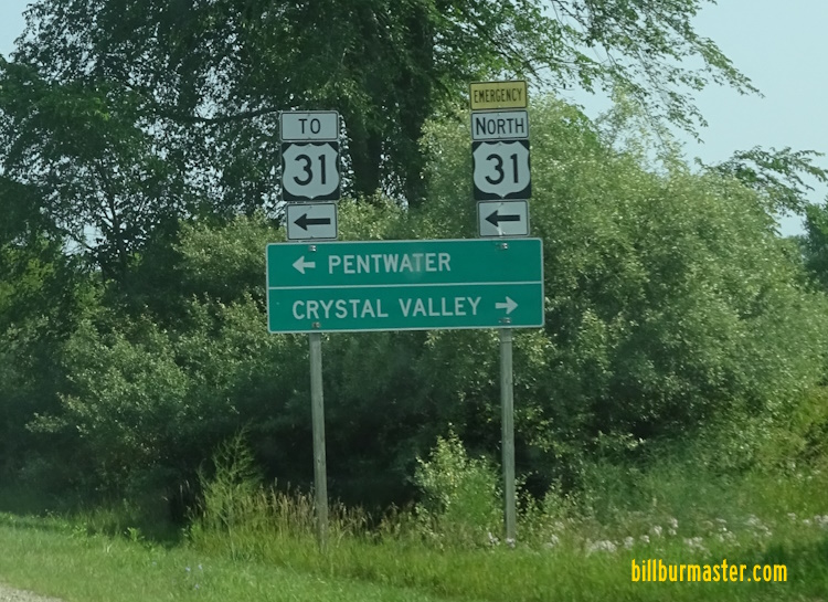 U.S. Federal Route 31 is a north-south freeway in Western Oceana County. It runs from the Muskegon/Oceana County Line, near Montague, to the Oceana/Mason County Line, near Pentwater. U.S. Rt. 31 does not pass through any towns in Oceana County. U.S. Rt. 31 is not multi-plexed in Oceana County. U.S. Rt. 31 intersects the following highways in Oceana County. Michigan State Route 20, near New Era. BUSN U.S. Rt. 31, near Hart. BUSN U.S. Rt. 31, near Pentwater. BUSN U.S. Rt. 31, near Pentwater.