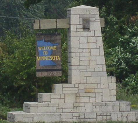 | A sign on SB I-35 at the Iowa/Minnesota State Line. (April, 2004) | A sign on SB MN 76 at the Iowa/Minnesota State Line. (June, 2005) |