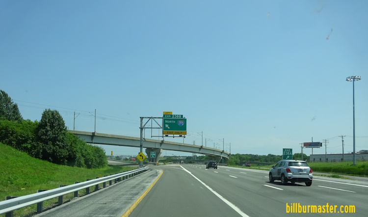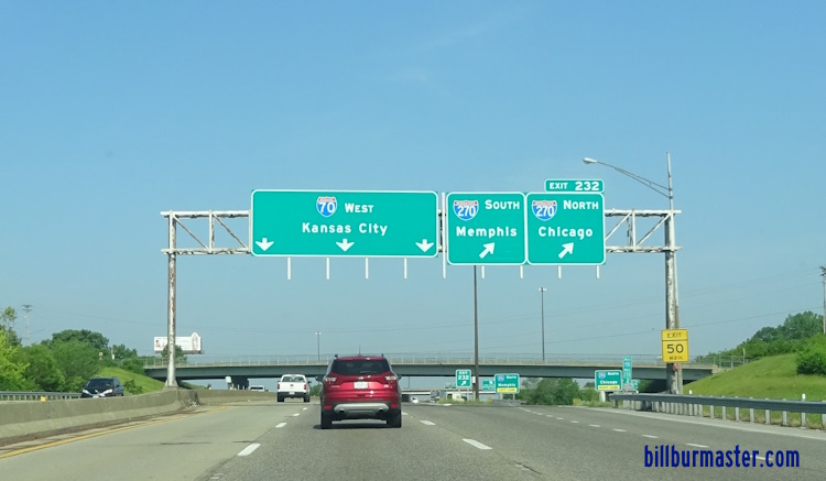 SB I-55; WB I-64/70; U.S. Rt. 40 near their split in Downtown St. Louis.