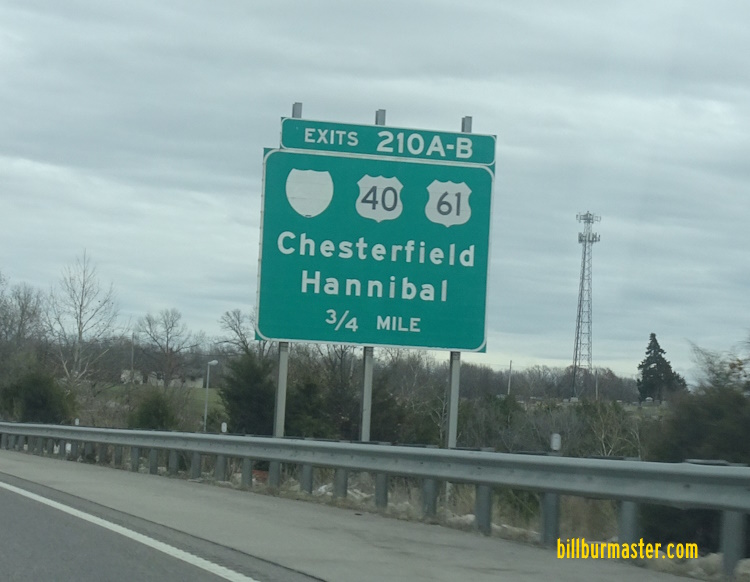 A BGS for I-64; U.S. Rt. 40/61 under one mile from the interchange on EB I-70/U.S. Rt. 40. (December, 2024)