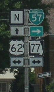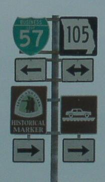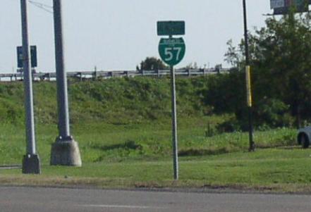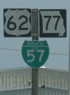 The southern end of BUSN Loop I-57. The southern end marker. A BGS on NB I-57/EB U.S. Rt. 60. NB BUSN Loop I-57/MO St Rt 105 north of I-57/U.S. Rt. 60. NB BUSN Loop I-57/EB U.S. Rt. 62/SB MO St Rt 77 in Charleston. NB BUSN Loop I-57; EB U.S. Rt. 62; SB MO St Rt 77 on the eastside of Charleston.