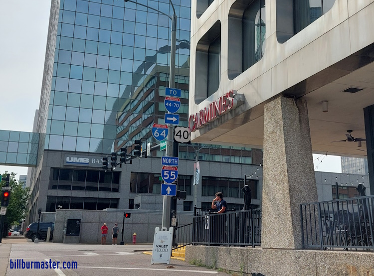 A guide marker on Walnut in Downtown St. Louis. (June, 2025) |