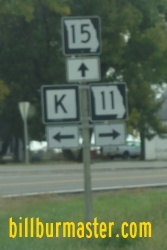 A junction marker on SB MO St Rt 15. EB MO Sec St Rt K west of Baring.