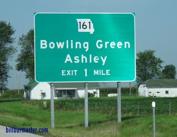 BGS on NB U.S. Rt. 61. A BGS on NB U.S. Rt. 61. A BGS on NB U.S. Rt. 61. NB BUSN U.S. Rt. 61/SB MO St Rt 161 on the southside of Bowling Green. A junction marker on SB BUSN U.S. Rt. 61.