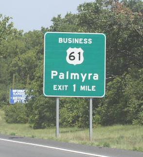 Business U.S. Federal Route 61 runs through the town of Palmyra. This is the county seat for Marion County. U.S. Rt. 61 by-passes the town to the east on a four-lane highway. BUSN U.S. Rt. 61 passes through the following town in Marion County. Palmyra