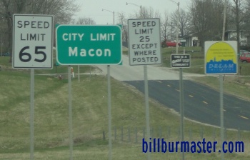U.S. Federal Route 36 is an east-west expressway in Central Macon County. It runs from the Linn/Macon County Line, near Bucklin, to the Macon/Shelby County Line, near Anabel. There is one business route at Macon. U.S. Rt. 36 passes through the following town in Macon County. Macon