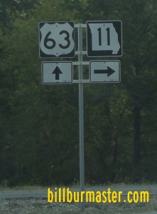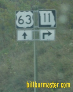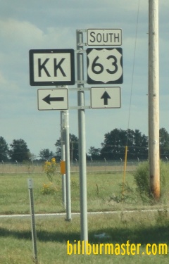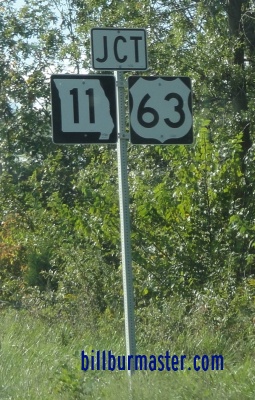 Branches of U.S. Rt. 63 in Adair County. NB U.S. Rt. 63/MO St Rt 11; WB MO St Rt 6 in Kirksville. A junction marker on WB MO St Rt 6. SB U.S. Rt. 63 south of MO St Rt 11. SB U.S. Rt. 63 north of La Plata.