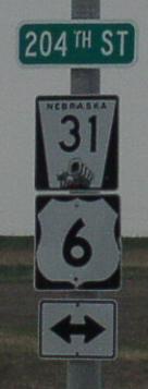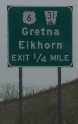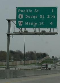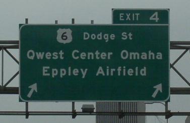 WB I-480/U.S. Rt. 6 at the Nebraska/Iowa State Line. BGS on WB I-480/U.S. Rt. 6. EB U.S. Rt. 6 in Downtown Omaha at the ramp to I-480. A mileage chart on NB I-680. A BGS on NB I-680. EB U.S. Rt. 6/NB NE St Rt 31 near Dodge Street. This corner is being turned into a interchange. (April 12, 2004). EB U.S. Rt. 6/NB NE St Rt 31 at Dodge Street. (April 12, 2004) The new overpass under construction. (April 12, 2004) EB U.S. Rt. 6/NB NE St Rt 31 near Pacific Street. A guide sign at U.S. Rt. 275/NE St Rt 92. A BGS on WB U.S. Rt. 275/NE St Rt 92.
