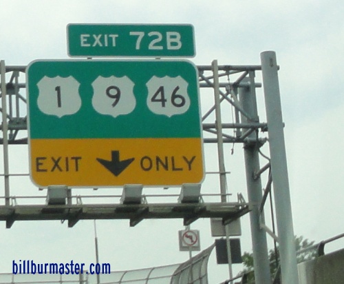 SB I-95/U.S. Rt. 1-9/WB U.S. Rt. 46 at the New York/New Jersey State Line. SB I-95/U.S. Rt. 1-9/WB U.S. Rt. 46 in Fort Lee. A BGS on SB I-95/U.S. Rt. 1-9/WB U.S. Rt. 46. A BGS on SB I-95/U.S. Rt. 1-9/WB U.S. Rt. 46.