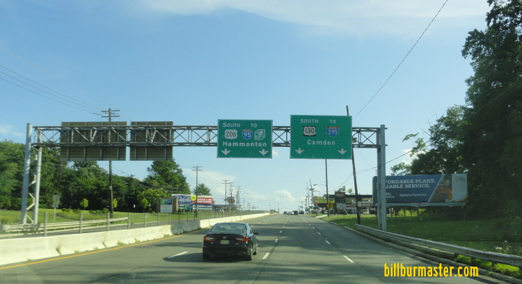 U.S. Federal Route 206 is a north-south highway in Central Burlington County. It runs from the Atlantic/Burlington County Line, near Elm, to the Burlington/Mercer County Line, near Yardville Heights. U.S. Rt. 206 passes through the following towns in Burlington County. Shamong Mansfield Bordentown U.S. Rt. 206 is multi-plexed in Burlington County. U.S. Rt. 130, at Bordentown. U.S. Rt. 206 intersects the following highways in Burlington County. New Jersey State Route 70, near Chairville. New Jersey State Route 38, near Mount Holly. New Jersey State Route 68, near Mansfield. Interstate 95, (New Jersey Turnpike) near Bordentown. U.S. Rt. 130, at Bordentown. U.S. Rt. 130, at Bordentown.