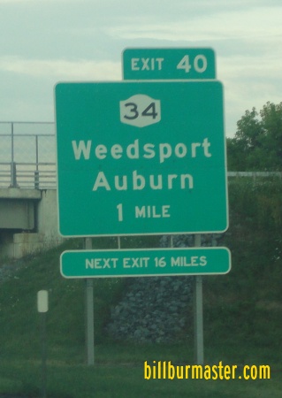 New York State Route 34 is a north-south highway in Central Cayuga County. It runs from Oswego/Cayuga County Line, near Ira, to the Cayuga/Tompkins County Line, near North Lansing. NY St Rt 34 passes through the following towns in Cayuga County. Cato Weedsport Aubrun Fleming Scipio Center Venice Center NY St Rt 34 is multi-plexed in Cayuga County. New York State Route 38, at Auburn. NY St Rt 34 intersects the following highways in Cayuga County. New York State Route 370, at Cato. Itnerstate 90, (New York State Thruway) near Weedsport. New York State Route 31, at Weedsport. U.S. Rt. 20, at Auburn. New York State Route 5, at Auburn. New York State Route 38, at Auburn. New York State Route 38, at Auburn. New York State Route 34B, at Fleming. New York State Route 90, near at Genoa.