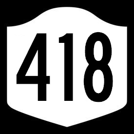 New York State Route 418 is an east-west highway in Warren County. It runs from Thurman to U.S. Rt. 9 in Warrensburg. NY St Rt 418 passes through the following towns in Warren County. Thurman Warrensburg NY St Rt 418 is not multi-plexed in Warren County. NY St Rt 418 intersects the following highway in Warren County. U.S. Rt. 9, at Warrensburg.