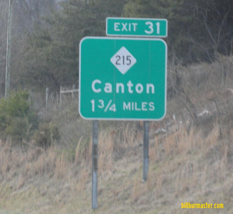 North Carolina State Route 215 is a north-south highway in South-Central Haywood County. It runs from the Transylvania/Haywood County Line, north of Balsam Grove, to Interstate 40/U.S. Rt. 74/TRUCK U.S. Rt. 64, near Canton. NC St Rt 215 passes through the following towns in Haywood County. Woodrow Canton NC St Rt 215 is multi-plexed in Haywood County. U.S. Rt. 276, at Woodrow. U.S. Rt. 19, at Canton. U.S. Rt. 23, at Canton. NC St Rt 215 intersects the following highways in Haywood County. Blue Ridge Parkway, near Balsam Grove. U.S. Rt. 276, at Woodrow. North Carolina State Route 110, at Woodrow. U.S. Rt. 276, at Woodrow. U.S. Rt. 19, at Canton. U.S. Rt. 23, at Canton. U.S. Rt. 19, at Canton. U.S. Rt. 23, at Canton. Interstate 40, at Canton. U.S. Rt. 74, at Canton. TRUCK U.S. Rt. 64, at Canton.