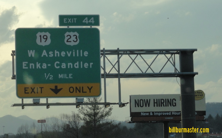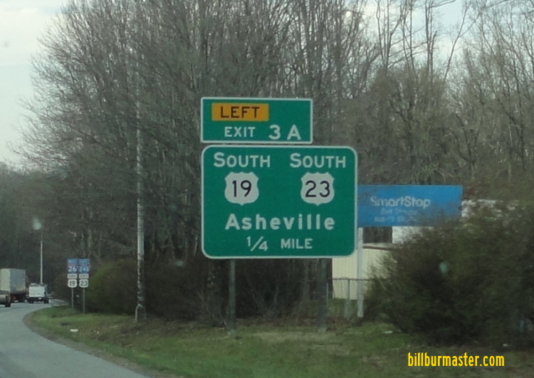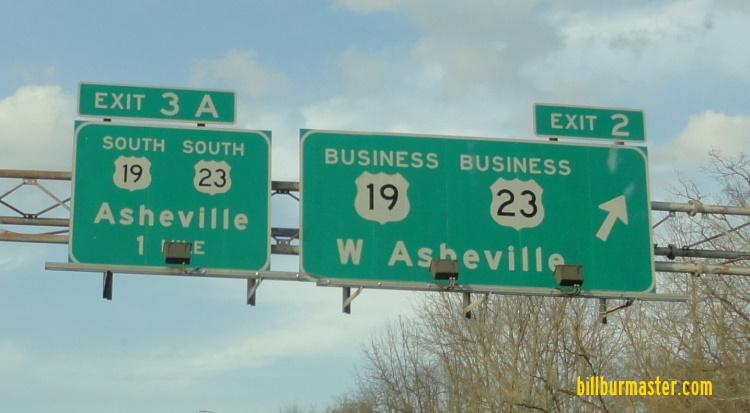 Branches of U.S. Rt. 23 in Buncombe County. A BGS on WB I-40/U.S. Rt. 74/TRUCK U.S. Rt. 64. A BGS on WB I-40/U.S. Rt. 74/TRUCK U.S. Rt. 64. A BGS on WB I-26; EB I-240/BUSN U.S. Rt. 19/BUSN U.S. Rt. 23. A BGS on WB I-26; EB I-240/BUSN U.S. Rt. 19/BUSN U.S. Rt. 23. A BGS on EB I-26; WB I-240/U.S. Rt. 19/23/74A. EB U.S. Rt. 19/23/74A at EB I-26; WB I-240. A BGS on WB I-26; EB I-240/U.S. Rt. 19/23/74A. A BGS on WB I-26; EB I-240/U.S. Rt. 19/23/74A. EB I-26; WB I-240/U.S. Rt. 19/23/74A at the French Broad River. WB I-26; EB I-240/U.S. Rt. 19/23/74A at east U.S. Rt. 70. A BGS on WB I-26; EB I-240/U.S. Rt. 19/23/74A.