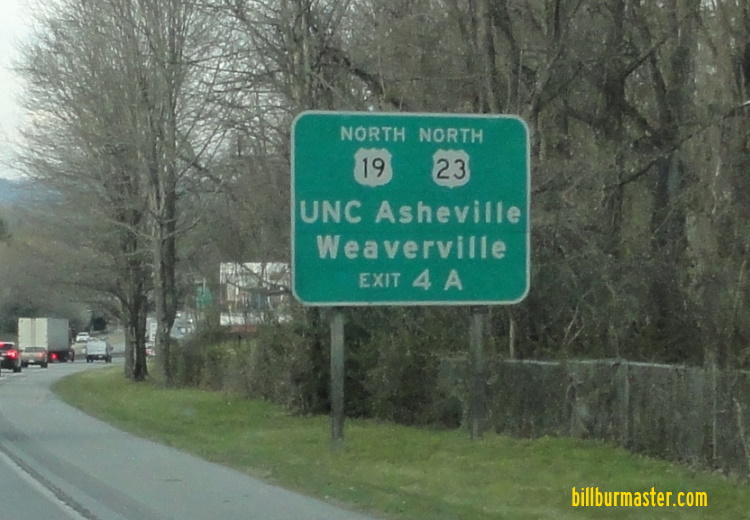 Woodfin Weaverville Flat Creek U.S. Rt. 23 is multi-plexed in Buncombe County. U.S. Rt. 19, throughout Buncombe County. U.S. Rt. 74A, at Asheville. Interstate 26, from Asheville to the Buncombe/Madison County Line. Interstate 240, at Asheville.