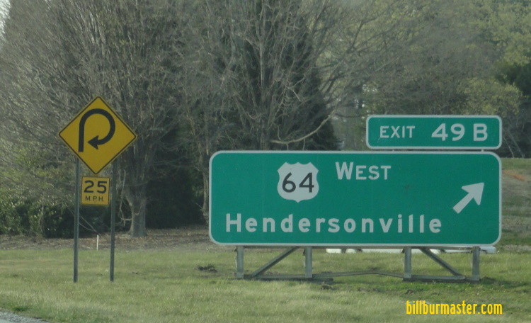 Interstate 26, at Hendersonville. U.S. Rt. 25, at Hendersonville. U.S. Rt. 74, at Hendersonville. TRUCK U.S. Rt. 64, at Hendersonville. U.S. Rt. 74A, near Bat Cave. North Carolina State Route 9, near Bat Cave.