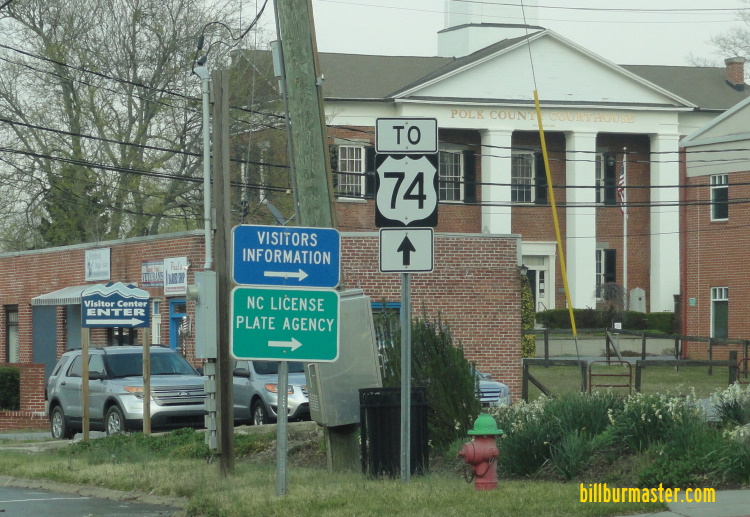 U.S. Federal Route 74 runs east-west across Polk County. It goes from the Polk/Henderson County Line, near Saluda, to the Polk/Rutherford County Line, near Union. U.S. Rt. 74 passes through the following town in Polk County. Columbus U.S. Rt. 74 is multi-plexed in Polk County. Interstate 26, from the Polk/Henderson County Line to Columbus.