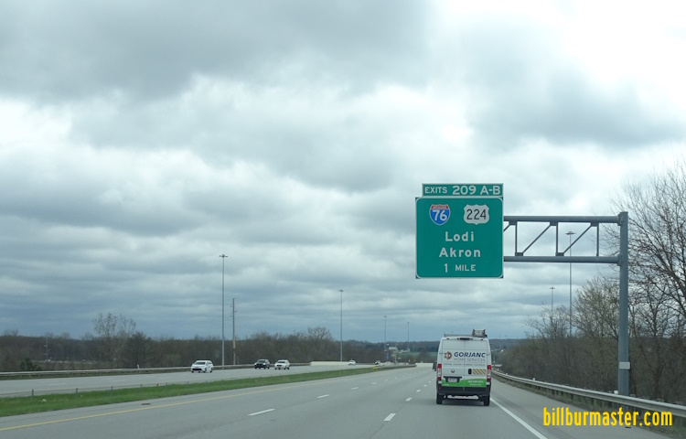 EB I-76/U.S. Rt. 224 a half mile from I-277. (April, 2025)