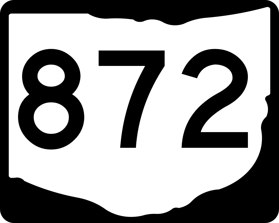 A BGS on NB OH St Rt 7. A guide marker on EB OH St Rt 872. EB OH St Rt 872 east of OH St Rt 7. WB OH St Rt 872 at the Ohio Welcome Sign.