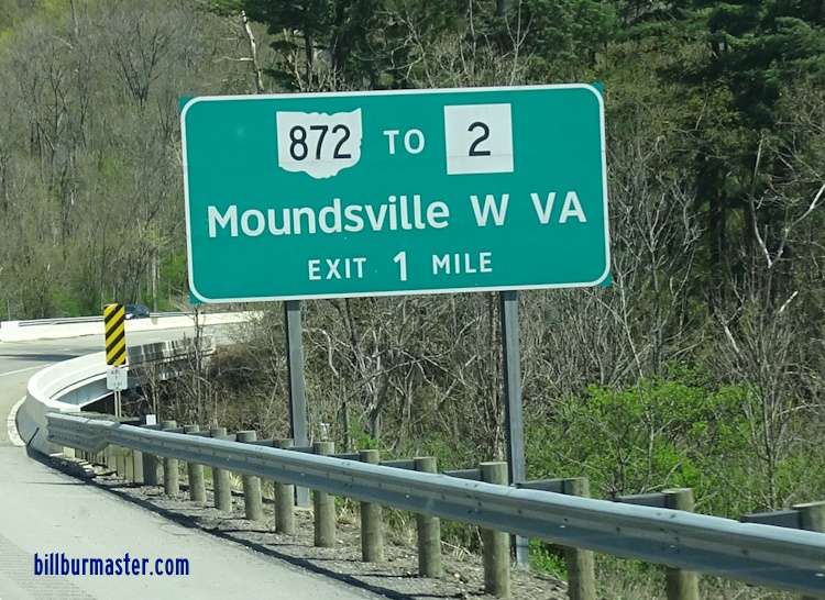 Ohio State Route 872 is an east-west highway in Eastern Belmont County. It runs from Ohio State Route 7, near Dilles Bottom, to the Ohio/West Virginia State Line, near Moundville, WV. This is the Ohio porton of the Moundville Bridge, and the connection roadway between the bridge and Ohio State Route 7. OH St Rt 872 does not pass through any towns in Belmont County. OH St Rt 872 is not multi-plexed in Belmont County. OH St Rt 872 intersects the following highway in Belmont County. Ohio State Route 7, near Dilles Bottom.