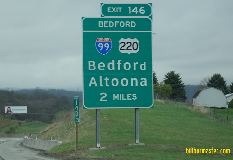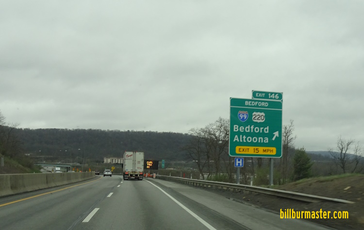 A BGS on EB I-70/76 two miles from I-99. (April, 2025)