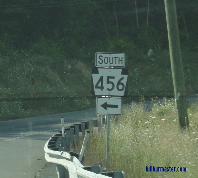 Pennsylvania State Route 456 is a north-south highway in Southwestern Franklin County. It runs from the Pennsylvania/Maryland State Line, near Yeakle Mill, to Pennsylvania State Route 16, near Cover Gap. PA St Rt 456 does not pass through any towns in Franklin County. PA St Rt 456 is not multi-plexed in Franklin County. PA St Rt 456 intersects the following highway in Franklin County. Pennsylvania State Route 16, near Cover Gap.