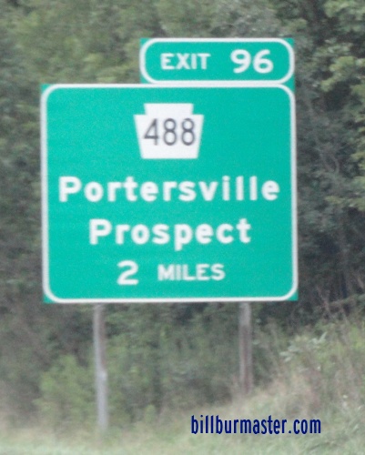 Pennsylvania State Route 488 runs east-west in West-Central Butler County. It runs from the Lawrence/Butler County Line, near Portsville, to U.S. Rt. 422, near Prospect. PA St Rt 488 passes through the following towns in Butler County. Portersville Prospect PA St Rt 488 is multi-plexed in Butler County. U.S. Rt. 19, at Portersville. PA St Rt 488 intersects the following towns in Butler COunty. U.S. Rt. 19, at Portersville. U.S. Rt. 19, at Portersville. Interstate 79, near Portersville. U.S. Rt. 422, at Portersville.