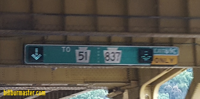 A BGS on SB I-579. A guide sign near the Liberty Tunnel. A set of BGS's at the Liberty Tunnel. A set of guide signs near the Liberty Tunnel. NB TRUCK U.S. Rt. 19/PA St Rt 51 west of the Liberty Tunnel. NB TRUCK U.S. Rt. 19/PA St Rt 51 near Woodruff. A guide marker on NB PA St Rt 51. NB TRUCK U.S. Rt. 19/PA St Rt 51 east of I-376/U.S. Rt. 19-22-30. A BGS on EB I-376; NB U.S. Rt. 19; EB U.S. Rt. 22/30. A BGS on EB I-376; EB U.S. Rt. 22/30. A BGS on NB I-279; EB U.S. Rt. 22/30. A BGS on EB I-376; U.S. Rt. 22/30. A BGS on WB I-376/TK U.S. Rt. 19; U.S. Rt. 22/30. A guide marker on WB BUSN Loop I-376.