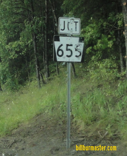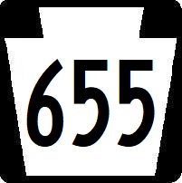 Pennsylvania State Route 655 is a north-south highway in Central Fulton County. It runs from the Maryland/Pennsylvania State Line, near Hancock, Maryland, to the Fulton/Huntington County Line, near Waterfall. PA St Rt 655 passes through the following towns in Fulton County. Needmore Andover Harrisonville Hustontown Gracey Waterfall PA St Rt 655 is multi-plexed in Fulton County. U.S. Rt. 522, near Needmore. PA St Rt 655 crosses the following highways in Fulton County. Pennsylvania State Route 484, near Warfordsburg. U.S. Rt. 522, at Needmore. U.S. Rt. 522, near Needmore. U.S. Rt. 30, at Harrisonville. Interstate 76, at Hustonville. (NO Interchange) Pennsylvania Turnpike, at Hustonville. (NO Interchange) Pennsylvania State Route 913, at Waterfall.