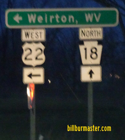 U.S. Federal Route 22 runs east-west across Northern Washington County. It goes from the Pennsylvania/West Virginia State Line, near Paris, to the Alleghany/Washington County Line, near Imperial. U.S. Rt. 22 does not pass through any towns in Washington County. U.S. Rt. 22 is not multi-plexed in Washington County. U.S. Rt. 22 intersects the following highways in Washinton County. Pennsylvania State Route 18, Burgettstown.
