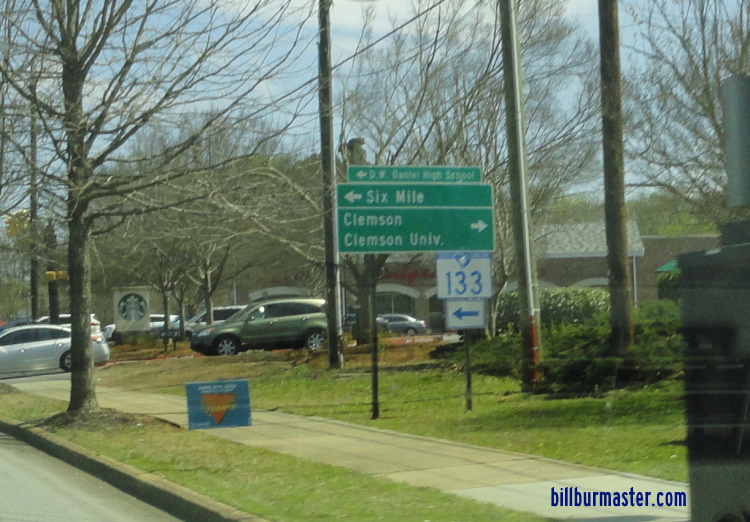 South Carolina State Route 133 runs north-south in Western Pickens County. It goes from U.S. Rt. 76/123; South Carolina State Route 28, at Clemson, to South Carolina State Route 11, at the Keowee Toxaway State Park. SC St Rt 133 passes through the following towns in Pickens County. Clemson Six Mile SC St Rt 133 is multi-plexed in Pickens County. South Carolina State Route 137, at Six Mile. SC St Rt 133 intersects the following highways in Pickens County. U.S. Rt. 76, at Clemson. U.S. Rt. 123, at Clemson. South Carolina State Route 28, at Clemson.