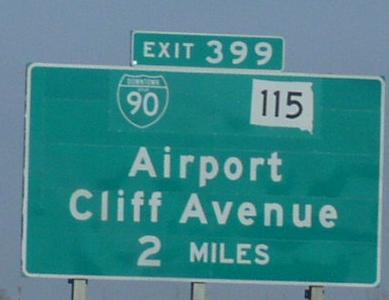 NB SD St Rt 115 north of I-90. A BGS on EB I-90. SB DWTN Spur I-90/SD St Rt 115 at 60th Street. A guide marker on SB DWTN Spur I-90/SD St Rt 115. A guide marker on NB SD St Rt 115 at Cliff and Benson. NB DWTN Spur I-90/SD St Rt 115 near Joe Foss Field. A close-up of the BGS's from the picture above. SD DWTN Spur I-90/SD St Rt 115 north of Downtown Sioux Falls. A junction marker on EB DWTN Spur I-29/SD St Rt 42. SB DWTN Loop I-229/SD ST Rt 115 south of downtown. BGS on NB I-229.