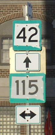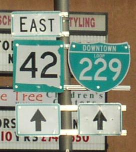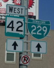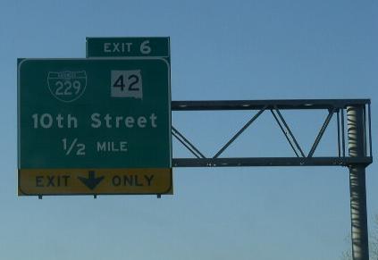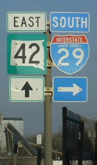 A guide sign on BS I-29. (April, 2004) A BGS on SB I-29. A BGS on NB I-29. EB DWTN Spur I-29/SD St Rt 42 at Holly in Sioux Falls. EB DWTN Spur I-29/SD St Rt 42 in Downtown Sioux Falls. Guide markers on SB SD St Rt 115. EB DWTN Loop I-229/SD St Rt 42 in Downtown Sioux Falls. WB DWTN Loop I-229/SD St Rt 42 on the eastside of Sioux Falls. Downtown is in the distance. A BGS on SB I-229. EB SD St Rt 42 near I-229. EB SD St Rt 42 on the eastside of Sioux Falls. A junction marker on NB SD St Rt 11. A street sign at the Iowa/South Dakota State Line. NOTE: The patch for "42" this covers a "38". WB SD St Rt 42 at the Iowa/South Dakota State Line.