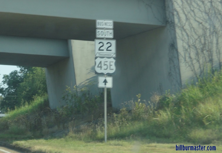 A "Business" banner above the U.S. Rt. 45E is missing in Martin. (August, 2018)