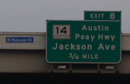 NB TN St Rt 14 north of I-40. A BGS on EB I-40. Another BGS on WB I-40 near Midtown-Memphis. NB U.S. Rt. 61/TN St Rt 14 on the southside of Memphis. NB U.S. Rt. 61/TN St Rt 14 at I-55. NB U.S. Rt. 61/TN St Rt 14 near the Mississippi/Tennessee State Line.