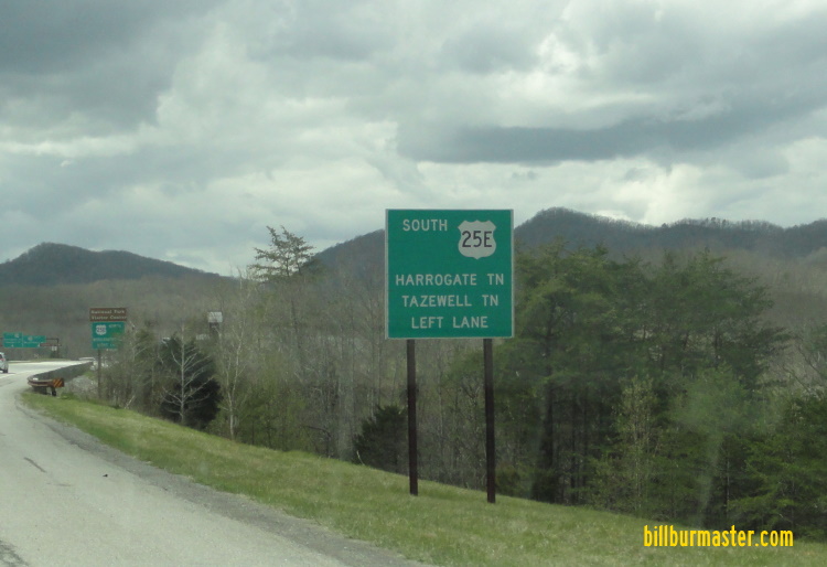 U.S. Federal Route 25E is a north-south highway in highway in Eastern Claiborne County. It runs from the Claiborne/Grainger County Line, near Thorn Hill, to the Kentucky/Tennessee State Line, at Cumberland Gap. U.S. Rt. 25E passes through the following towns in Claiborne County. Tazewell