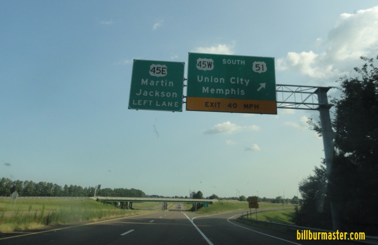 NB U.S. Rt. 51 near the Obion/Dyer County Line. NB U.S. Rt. 51 south of Troy. A BGS on NB U.S. Rt. 51. A BGS on NB U.S. Rt. 45W/51. A BGS on NB U.S. Rt. 45E. SB U.S. Rt. 51 at U.S. Rt. 45. A BGS on SB U.S. Rt. 51. SB U.S. Rt. 51 at the Tennessee Welcome Sign.