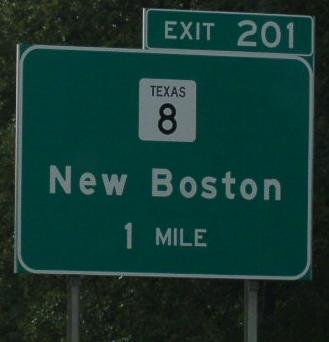 Texas State Route 8 is a north-south highway in Bowie County. TX St Rt 8 passes through the following towns at Bowie County. New Boston Boston Old Boston Corley Maud TX St Rt 8 is multi-plexed in Bowie County. U.S. Rt. 67, from Corley to Maud. TX St Rt 8 interstects the following highways on Bowie County. Arkansas State Route 41, at the Texas/Arkansas State Line. Interstate 30, at New Boston. U.S. Rt. 82, at New Boston. Texas Farm-to-Market 1840, at Boston. Texas Farm-to-Market 2149, at Old Boston. U.S. Rt. 67, at Corley. U.S. Rt. 67, at Maud. Texas Farm-to-Market 2624, near Maud.