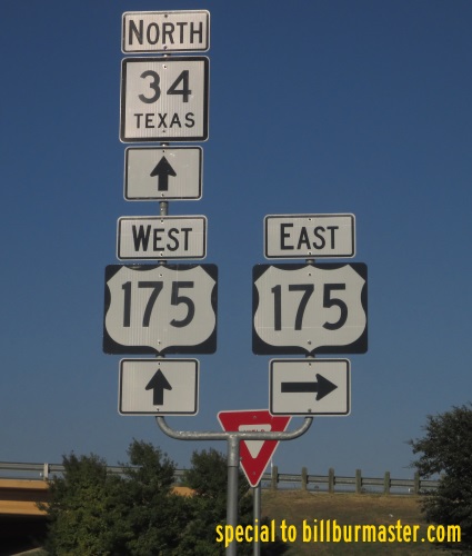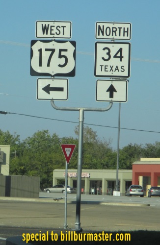 Branches of U.S. Rt. 175 in Kaufman County. A junction marker on NB TX St Rt 34. Photo from: Paul Dienhart