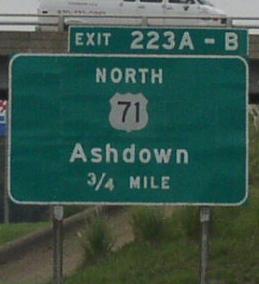 SB U.S. Rt. 59/71 near the Teas/Arkansas State Line. SB U.S. Rt. 59/71 at I-30. BGS on WB I-30. A BGS on WB I-30. Photo from: Paul Dienhart