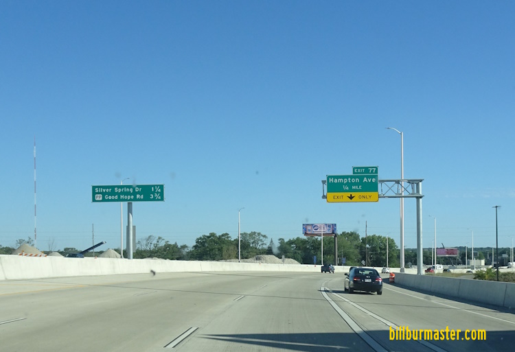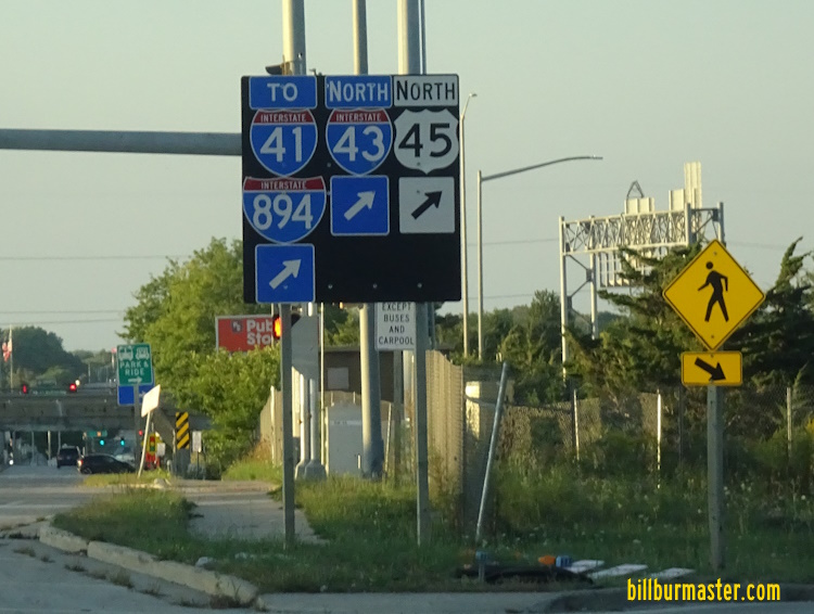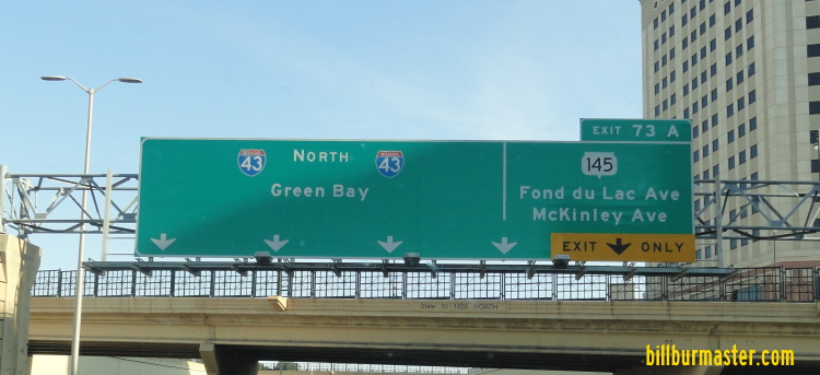 NB I-43 at the Milwaukee/Waukesha County Line. SB I-43 near Hales Corners. NB I-43 at Layton Ave in Metro-Milwaukee. SB I-43/U.S. Rt. 45 near WI St Rt 100 in Greenfield. A BGS on NB I-43. A BGS on NB I-43. A set of guide markers on NB U.S. Rt. 45/WI St Rt 100. A guide marker on NB U.S. Rt. 45/WI St Rt 100. NB I-43 at WI St Rt 100. A BGS on SB I-43/U.S. Rt. 45. A guide marker in Greenfield. NB I-43 south of I-41/894; U.S. Rt. 41. NB I-43 at I-41/894; U.S. Rt. 41. A BGS on SB I-41/U.S. Rt. 41-45; EB I-894. SB I-43 at I-41/894; U.S. Rt. 41/45. SB I-41/U.S. Rt. 41; NB I-43; EB I-894 at 92nd Street in Greenfield. SB I-41/U.S. Rt. 41; NB I-43; EB I-894at 92nd Street in Greenfield. SB I-41/U.S. Rt. 41; NB I-43; EB I-894 at 68th Street in Greenfield. A guide marker in Greenfield. A junction marker on SB WI St Rt 36. A guide marker on Howard Ave. Guide signs on NB I-43/EB I-894 in Milwaukee. Guide markers in Greenfield. Guide markers in Milwaukee. A BGS on NB I-41/U.S. Rt. 41; WB I-94. A BGS on NB I-41/U.S. Rt. 41; WB I-94. A BGS on NB I-41/U.S. Rt. 41; WB I-94. A BGS on NB I-41/U.S. Rt. 41; WB I-94. A BGS on NB I-41/U.S. Rt. 41; WB I-94. NB I-43 at the Mitchell Interchange. NB I-43 at the Mitchell Interchange. NB I-43/WB I-94 north of I-894. NB I-43/WB I-94 north of I-41/894; U.S. Rt. 41. NB I-43/WB I-94 north of I-41/894; U.S. Rt. 41. A BGS on NB I-43/WB I-94. WB I-94, NB I-43 in Milwaukee. NB I-43/WB I-94 south of Howard Ave. NB I-43/WB I-94 at Howard Ave. NB I-43/WB I-94 north of Howard Ave. NB I-43/WB I-94 south of Becher Street. NB I-43/WB I-94 at Becher Street. NB I-43/WB I-94 near Greenfield Ave. NB I-43/WB I-94 south of National Ave. A guide marker on WB WI St Rt 59. A guide marker on South 10th St in Milwaukee. A guide marker on East Walker in Milwaukee. NB I-43/WB I-94 near Downtown Milwaukee. NB I-43/WB I-94 south of I-794. NB I-43 at the Marquette Interchange. A BGS on EB I-94. A BGS on WB I-794. A BGS on WB I-794. A BGS on WB I-794. A guide marker on South Carferry in Milwaukee. A BGS on WB I-794. A BGS on SB Lincoln Memorial Drive. A set of guide markers on Clybourn Street in Milwaukee. A set of guide markers on SB WI St Rt 32. A set of old guide markers on Wisconsin Ave in Downtown Milwaukee. (October, 2004) NB I-43 at Wells in Milwaukee. NB I-43 at State in Milwaukee. A BGS on NB I-43. A BGS on NB I-43. NB I-43 at WI St Rt 145. NB I-43 north of WI St Rt 145. NB I-43 north of 8th in Milwaukee. NB I-43 north of North Ave. in Milwaukee. NB I-43 south of Locust Ave. in Milwaukee. NB I-43 at Burleigh St. in Milwaukee. NB I-43 south of Capitol Drive in Milwaukee. A guide marker on SB WI St Rt 32 in Whitefish Bay. NB I-43 north of WI St Rt 57/190. NB I-43 at Hampton Ave. (September, 2018) NB I-43 at Hampton Ave. (September, 2024) NB I-43 north of Hampton Ave. NB I-43 south of Silver Springs. NB I-43 at Milwaukee PP. A set of guide markers on the ramp from NB I-43. NB I-43/WI St Rt 32 near Milwaukee W.
