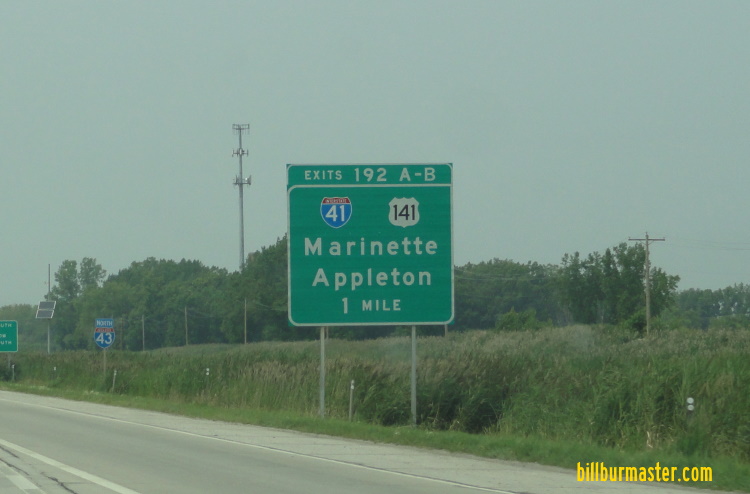 A BGS on SB I-41/U.S. Rt. 41; NB I-43; EB I-894 one mile from I-94. (July, 2015)