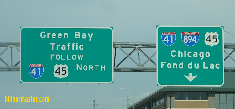 A BGS on SB I-41/U.S. Rt. 41; NB I-43; EB I-894 one mile from I-94. (July, 2015)