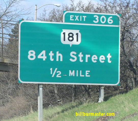 BGS on WB I-94. A BGS on WB I-94. WB I-94 at WI St Rt 181. SB WI St Rt 181 at Harwood. A junction marker on WB WI St Rt 100. Guide markers on WB WI St Rt 100.