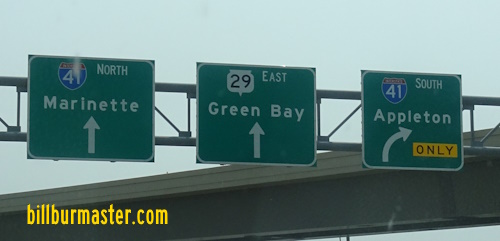 WB WI St Rt 29 at the Brown/Kewaunee County Line. WB WI St Rt 29 east of Poland. WB WI St Rt 29 at Poland. WB WI St Rt 29 west of Poland. WB WI St Rt 29 east of Bellevue. WB WI St Rt 29 east of Huron Road. A guide marker on EB WI St Rt 29. A guide marker on Manitowoc Road. A BGS on SB I-43. A BGS on SB I-43. A BGS on SB I-43. A BGS on NB I-41/U.S. Rt. 41. A BGS on NB I-43. EB WI St Rt 29 east of Packerland Road. A BGS on NB BCH EB. A junction marker on NB BCH EB.