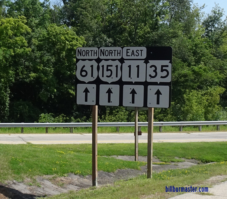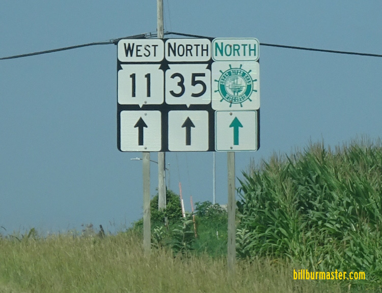 WI St Rt 35 is multi-plexed in Grant County. Wisconsin State Route 11, near East Dubuque, Illinois.